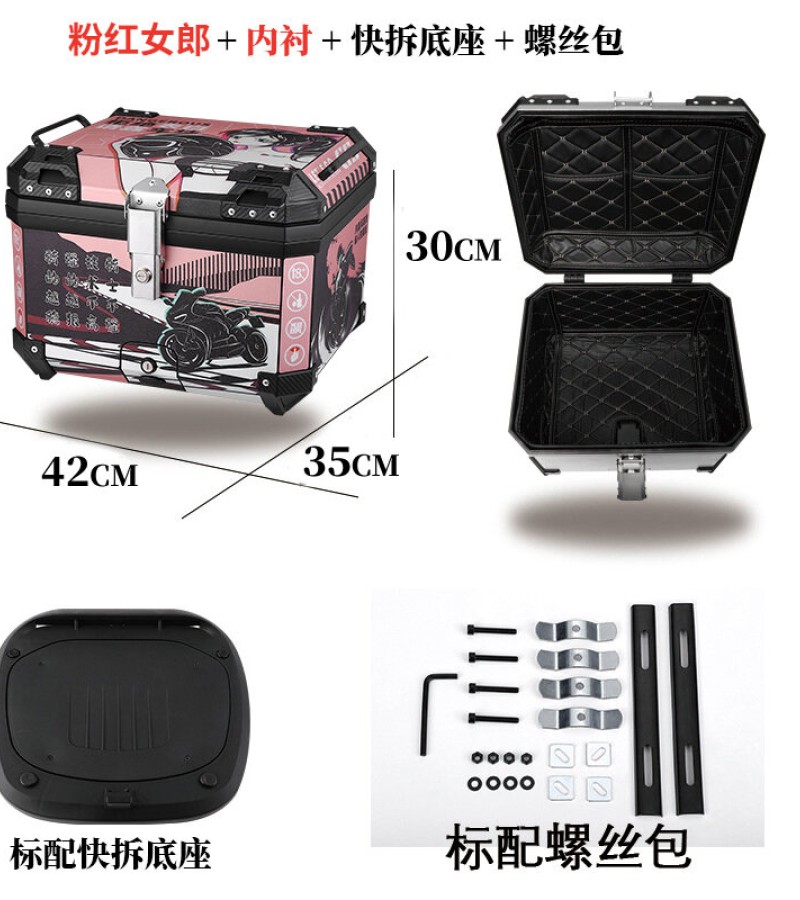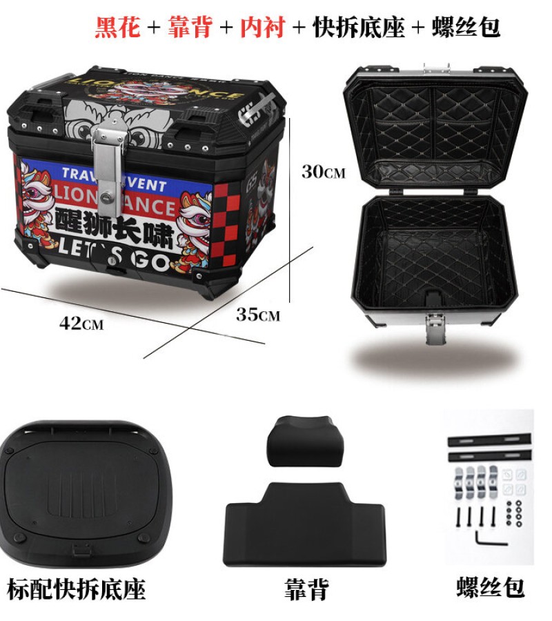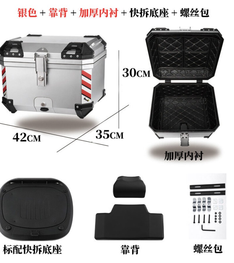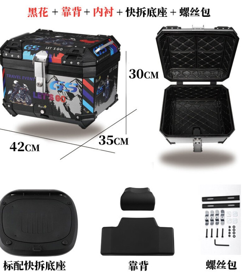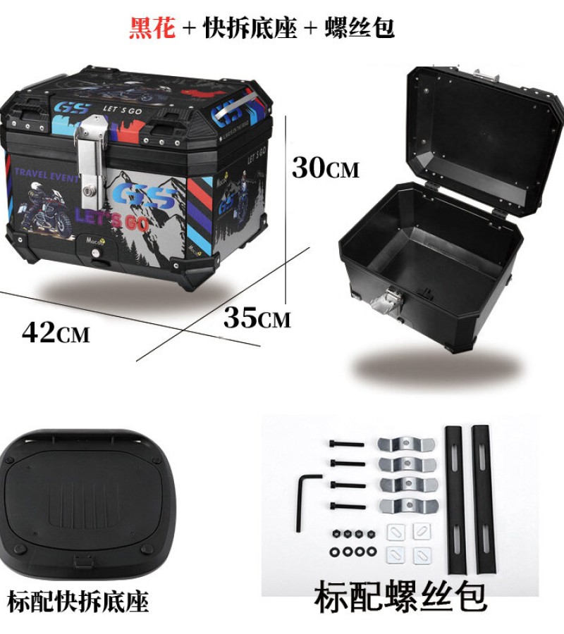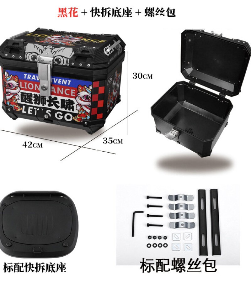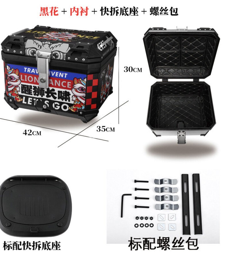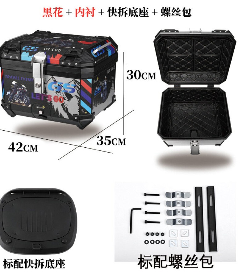 ABS Tail Box 45l Large Capacity Motorcycle Scooter Electric Vehicle Toolbox Quick Release Large Non-Aluminum Alloy Tail Box
