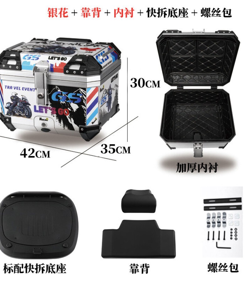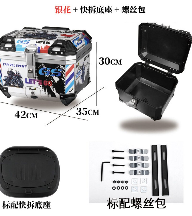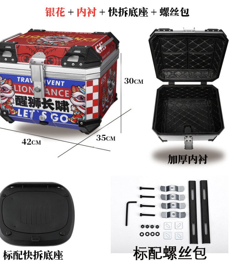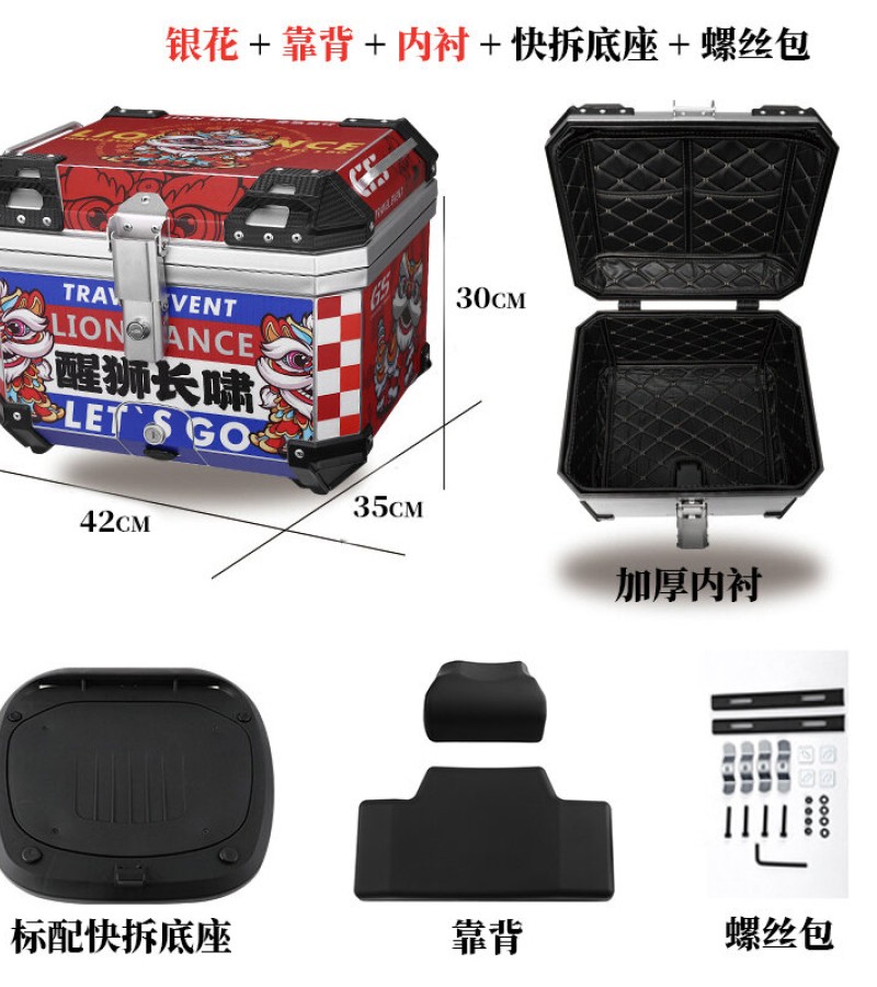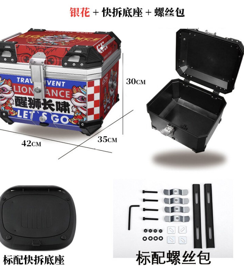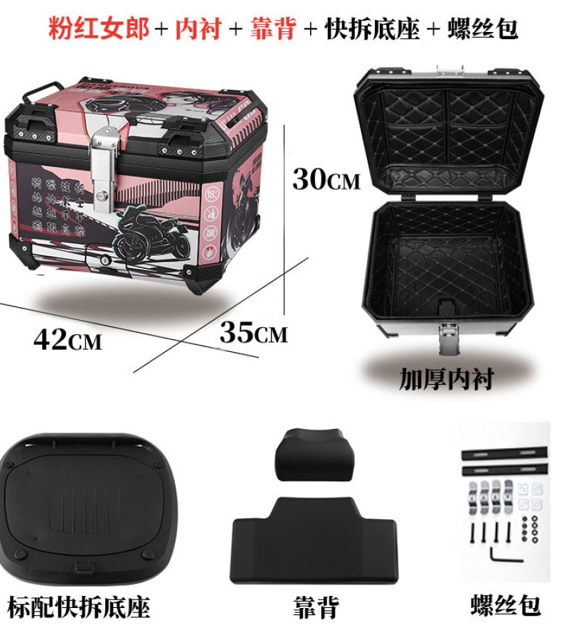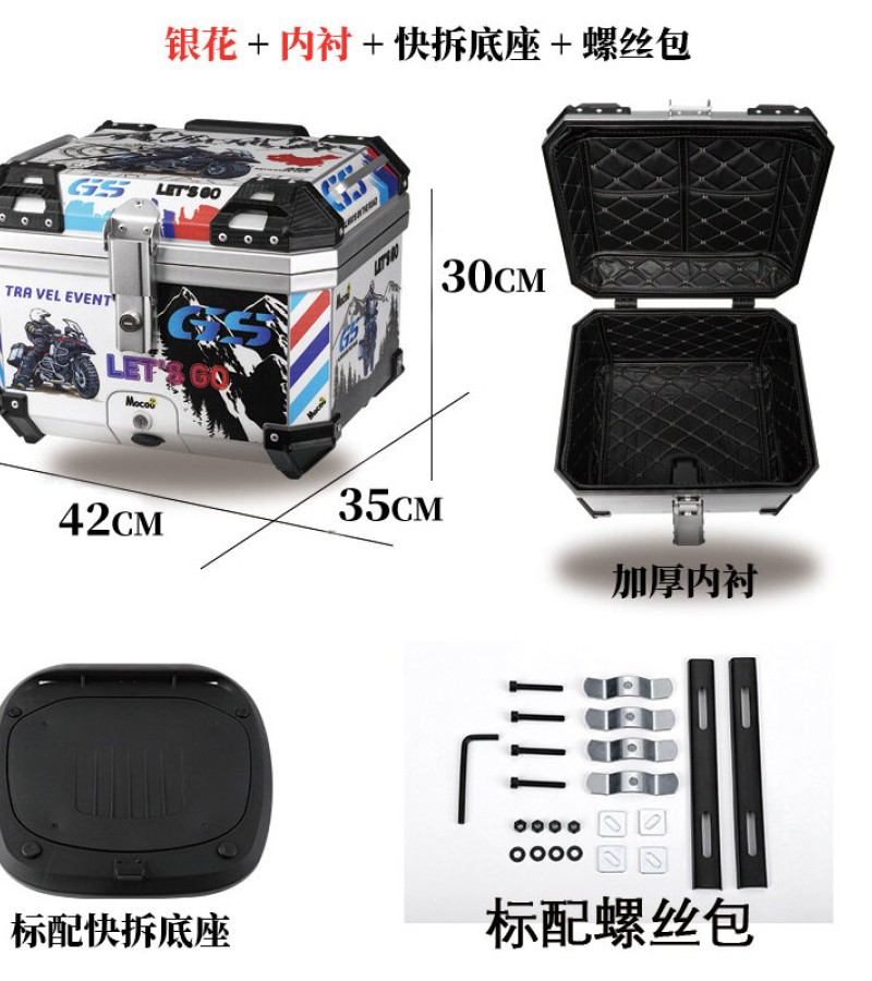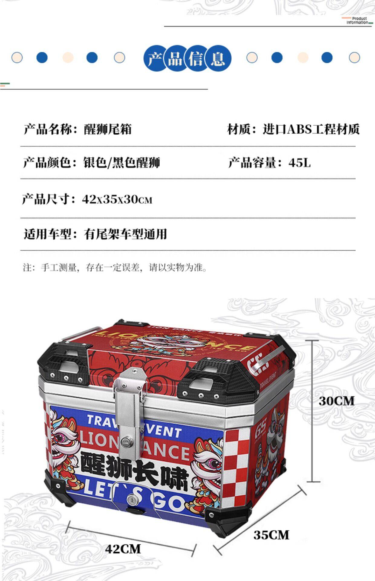 ABS Tail Box 45l Large Capacity Motorcycle Scooter Electric Vehicle Toolbox Quick Release Large Non-Aluminum Alloy Tail Box