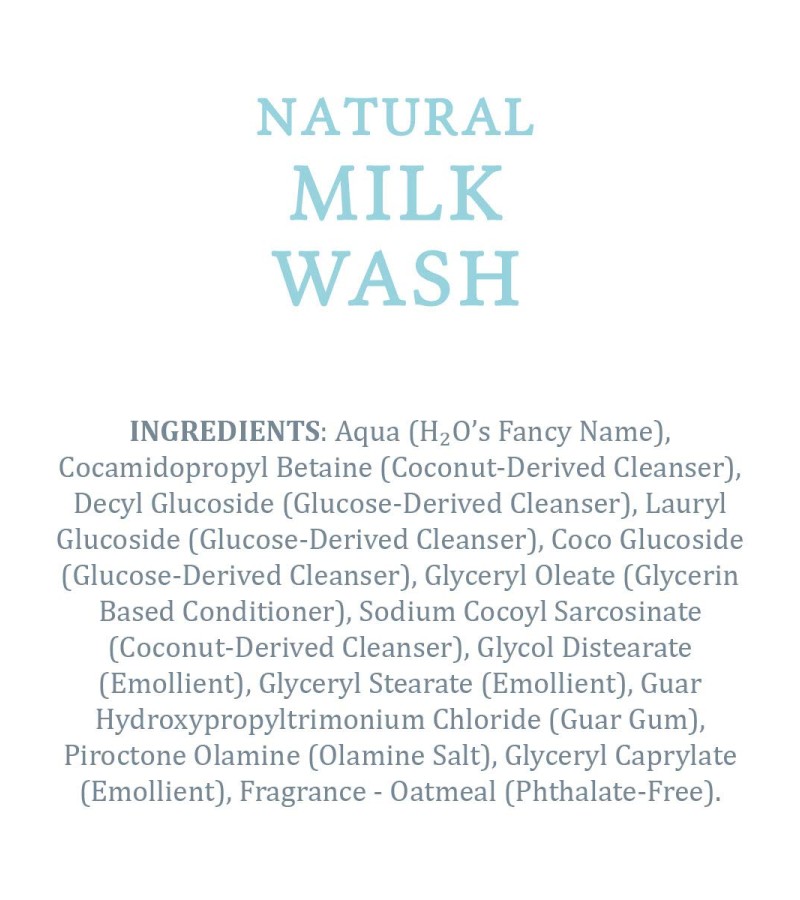 MooGoo Natural Milk Wash is a face wash formulation packaged into a larger bottle so that it can also be used on the body. We use 5 very mild natural cleansers as a blend is more gentle than one.