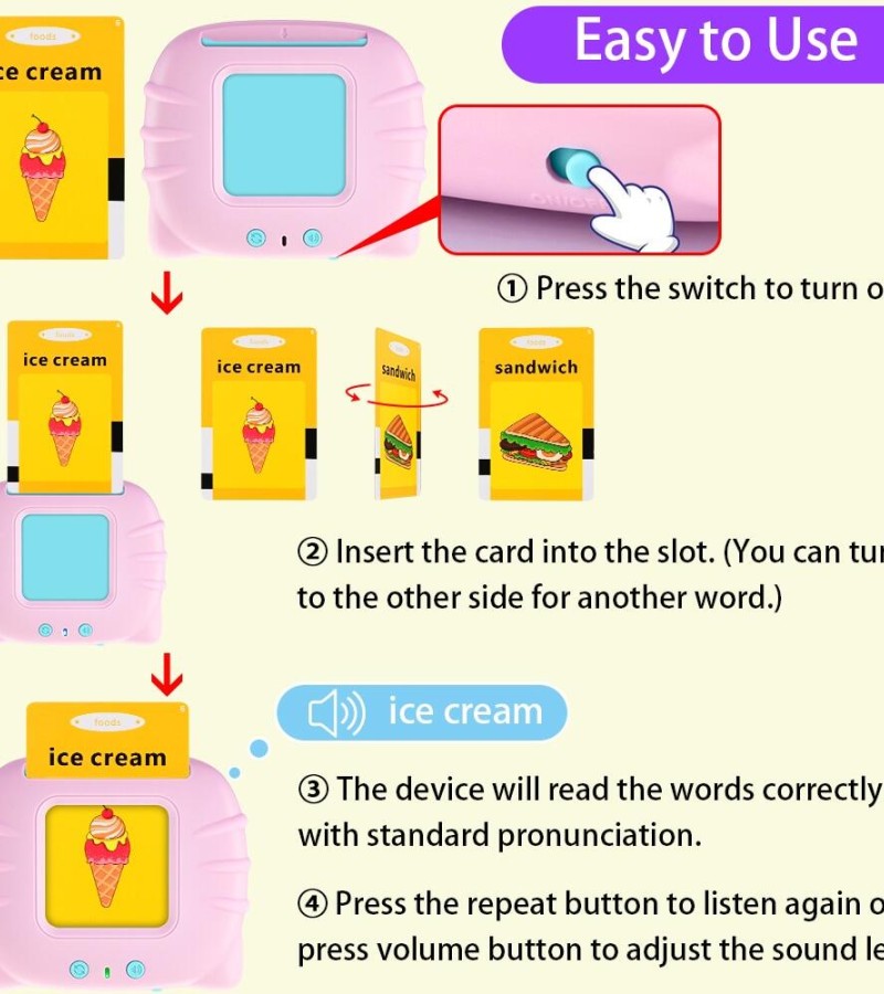 (Super Fan) SG STOCK Kids educational toys Smart English Speaker Flash Cards Reader Audio Books Flashcards for listening and reading audio toys Children Gift for age 2-6 year old