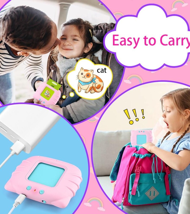 Specially Designed for Toddlers, The machine is so small and light that kids use it conveniently. Kids can put the machine in their small bag, and they can learn and play anytime, anywhere.