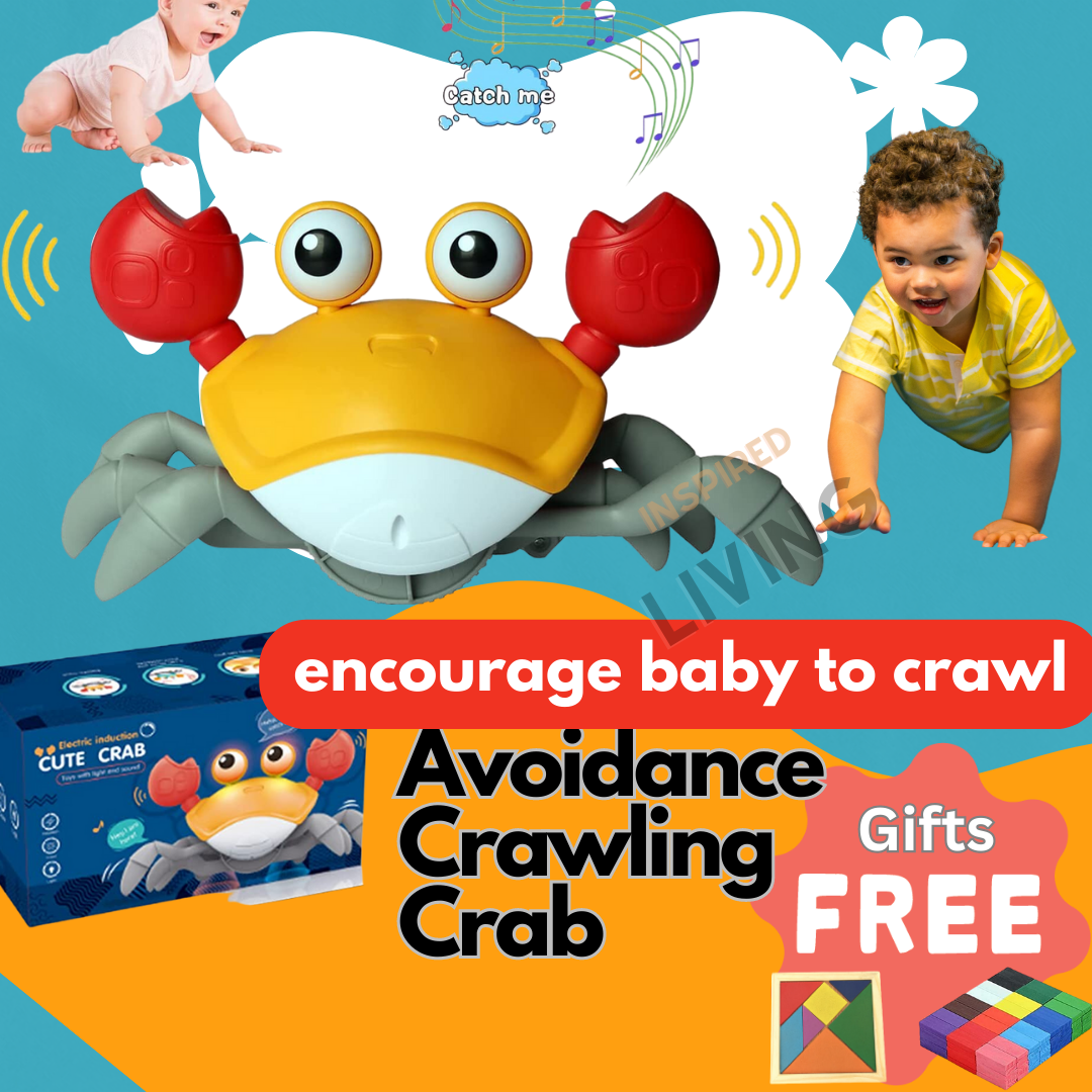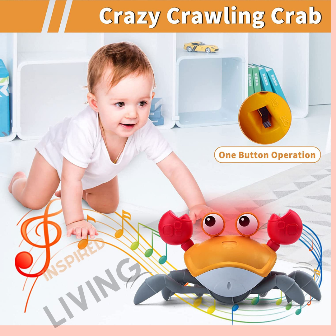 爬行螃蟹婴儿玩具-通过音乐和灯光自动避开障碍|圣诞礼物|圣诞礼物/生日礼物