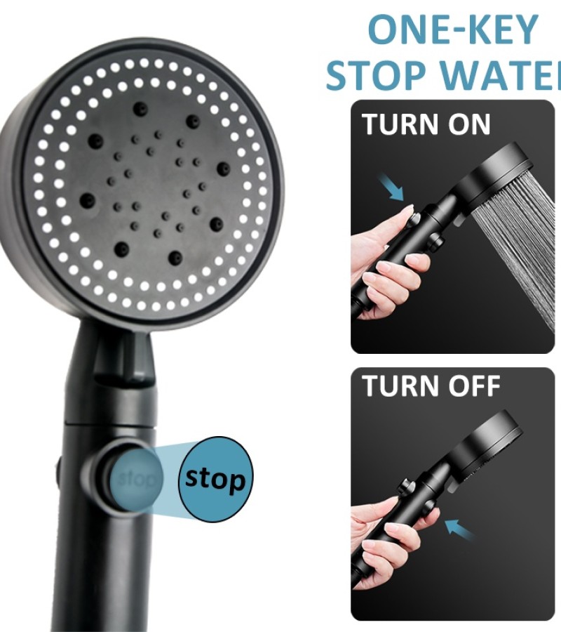 High Pressure Shower Head 5 Modes Adjustable Showerheads with 1.5m Hose Water Saving One-Key Stop Spray Nozzle Bathroom Showerhead Accessories