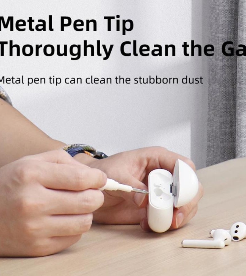 The Bluetooth earbuds cleaning pen combines three functions in one portable gadget with each part playing its role. Switch the head to use a flocking sponge, high-density brush, or metal tip, dealing with different cleaning tasks.