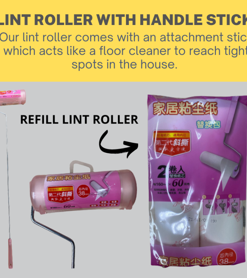 Extra Sheets (60s/90s) Dust & Floor Extra Sticky Lint Roller Refill Long / Short Handle | Hair Removal Bundle Deals 10/16cm