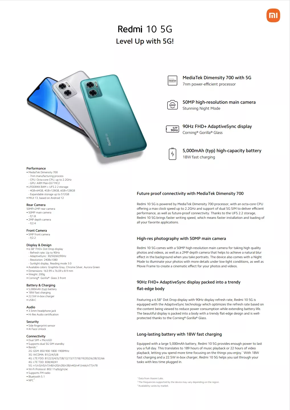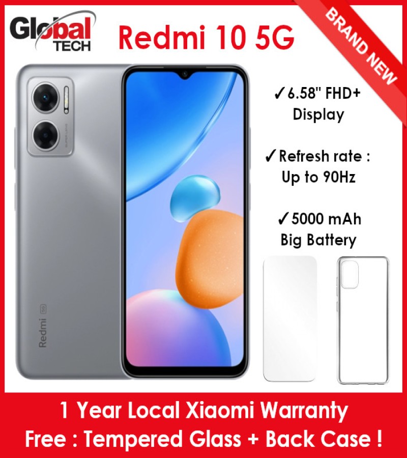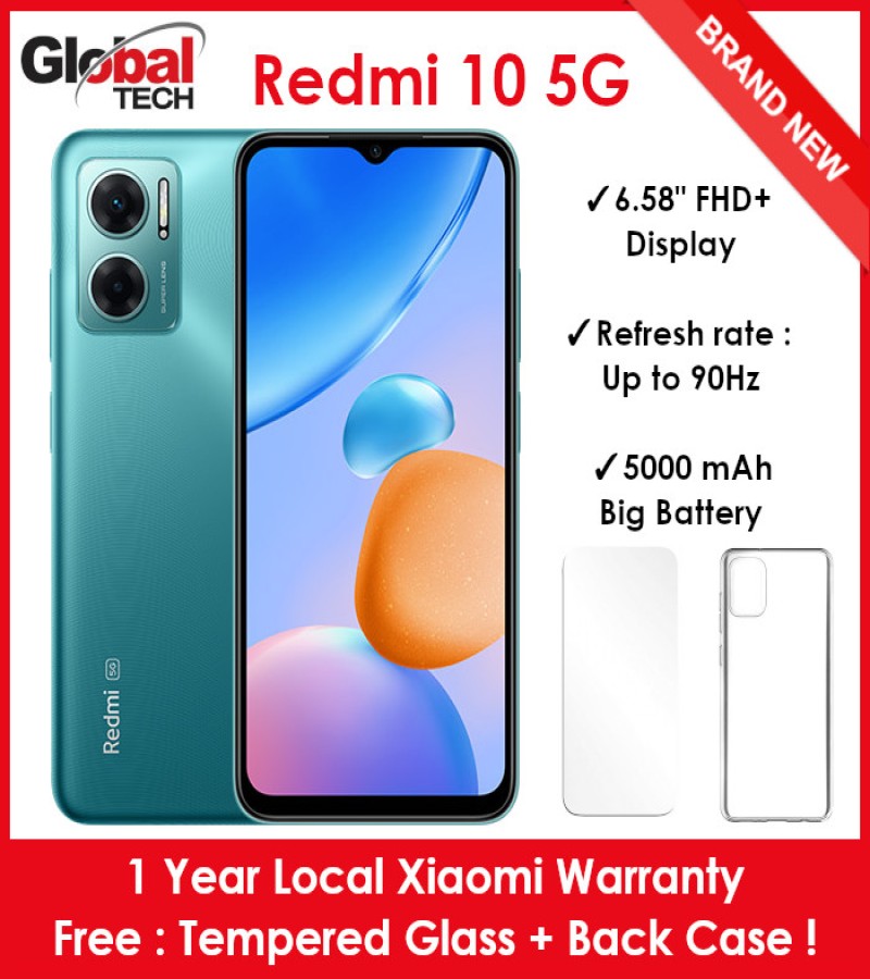 Xiaomi Redmi 10 5G 128GB ROM + 6GB RAM (Global Version) (1 Year Local Xiaomi Warranty) (FREE : TEMPERED GLASS + BACK CASE)