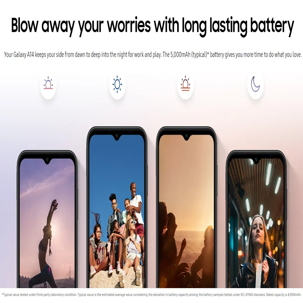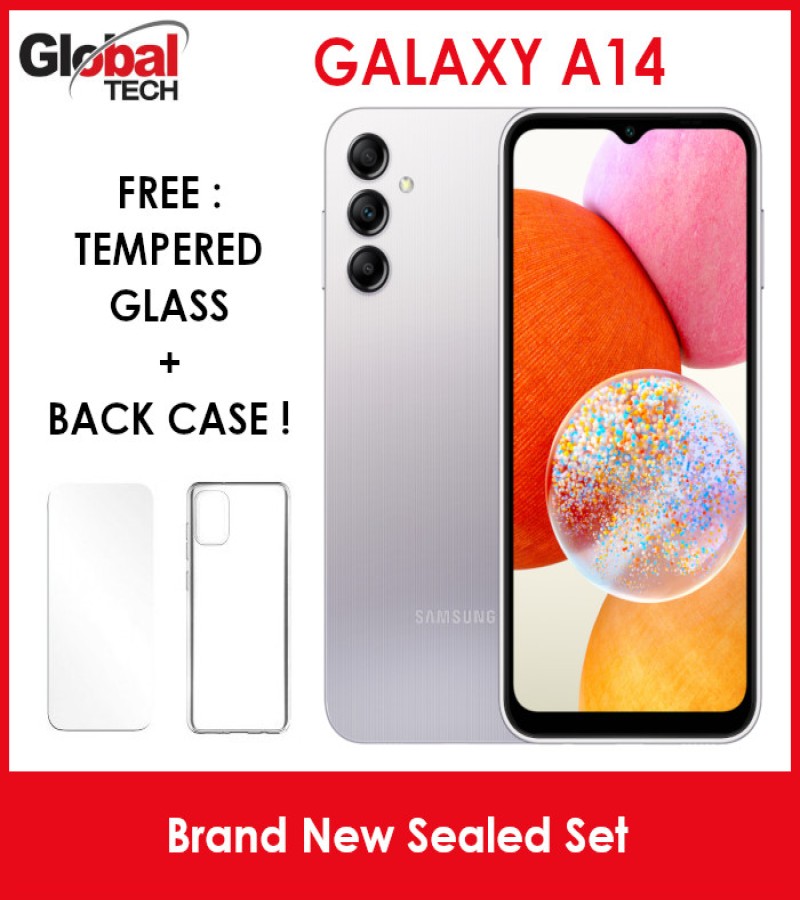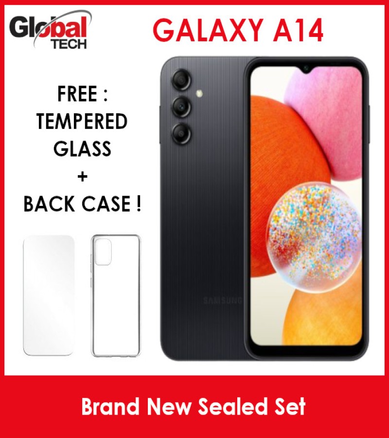 Samsung Galaxy A14 LTE / 128GB Rom + 6GB Ram (FREE : TEMPERED GLASS + BACK CASE)