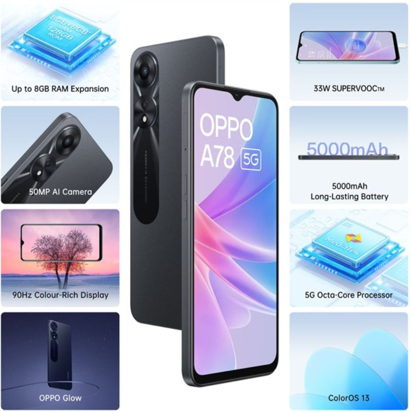 OPPO A78 5G (8GB 128GB) | 2 Years OPPO Warranty | Latest Model | OPPO PHONES | Purchase with FREE Gifts !!!