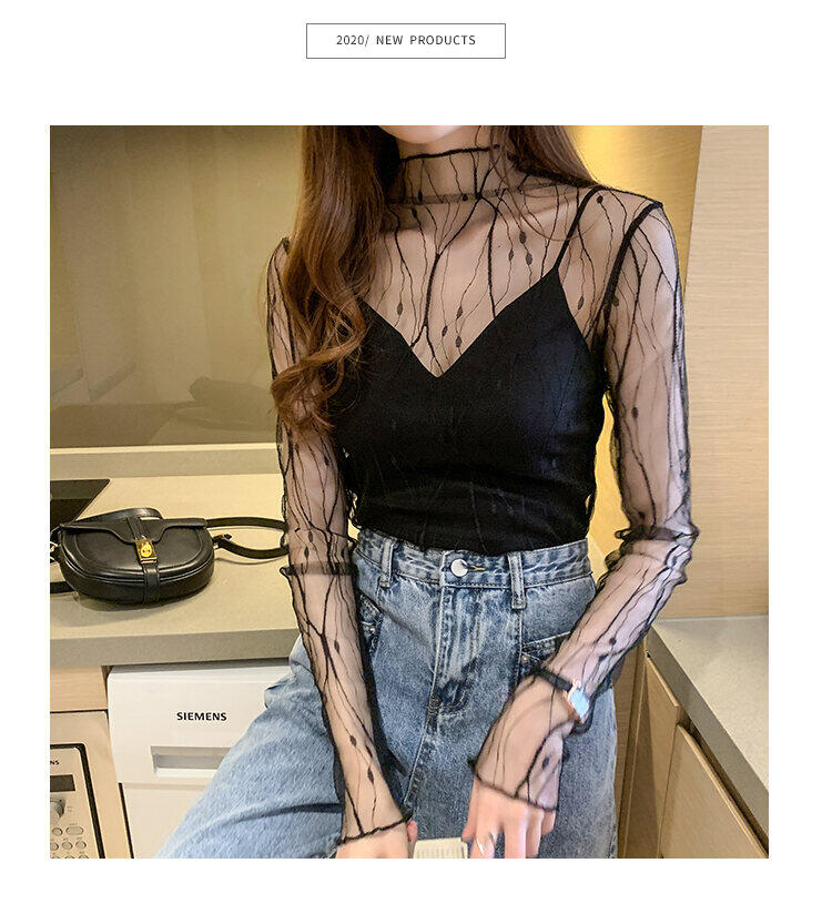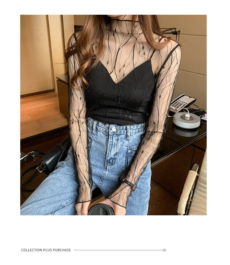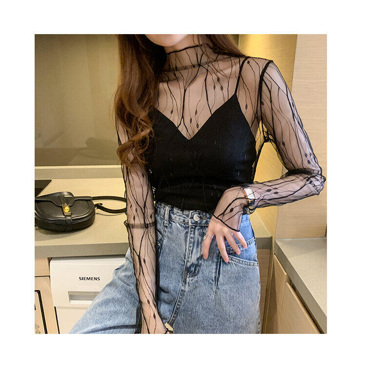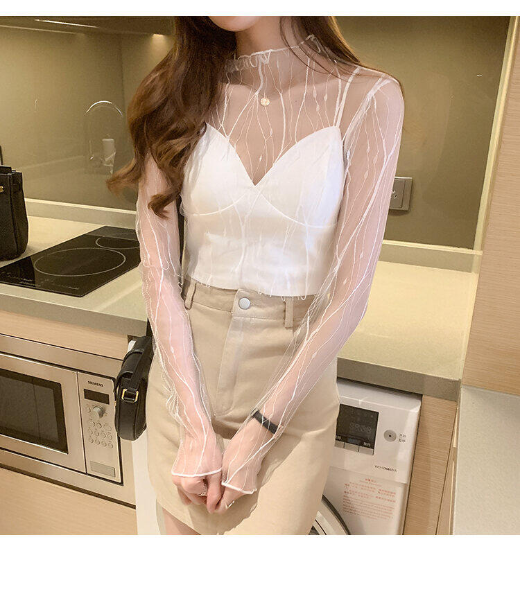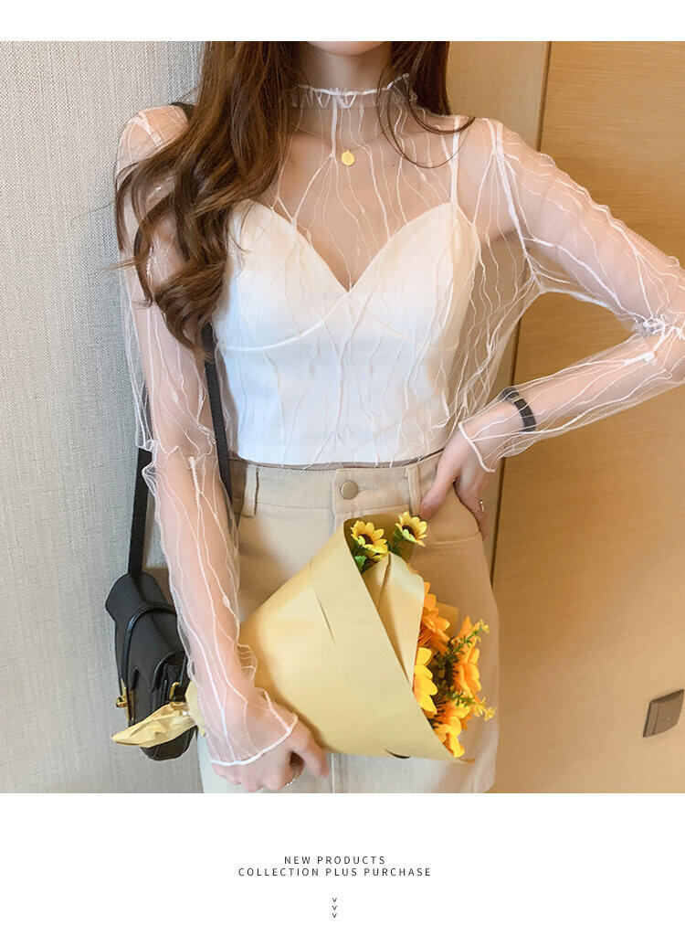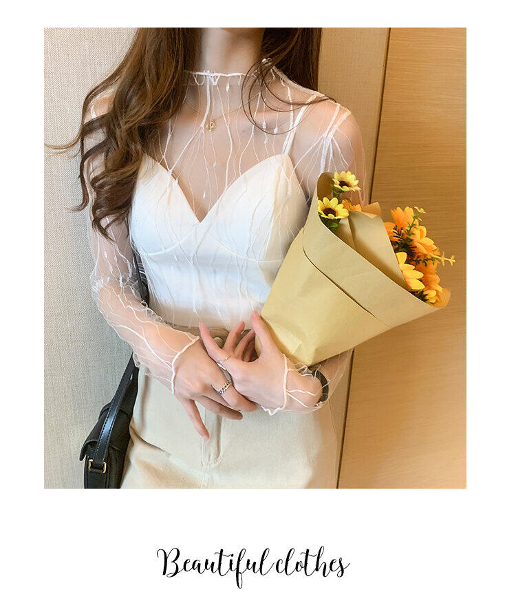 Spring and Autumn Simple Long Sleeves Fairy See-through Lace Mesh