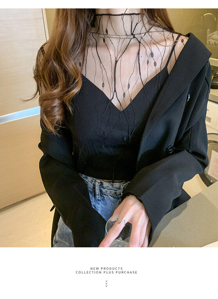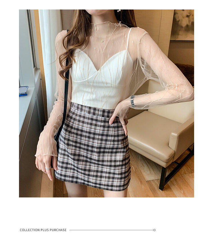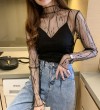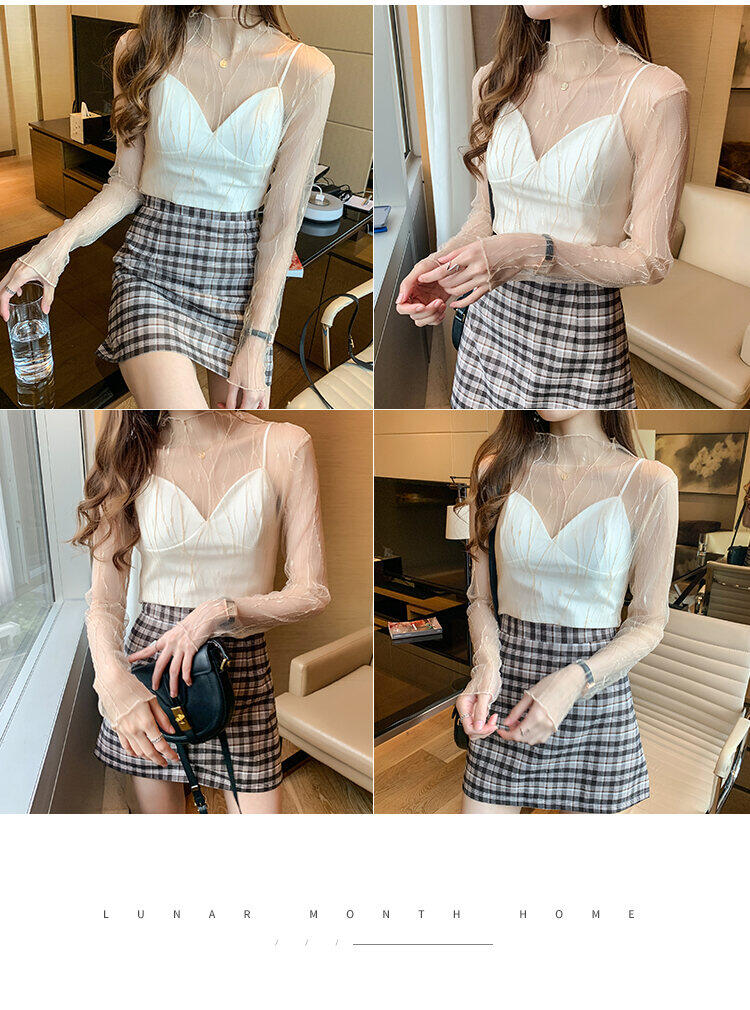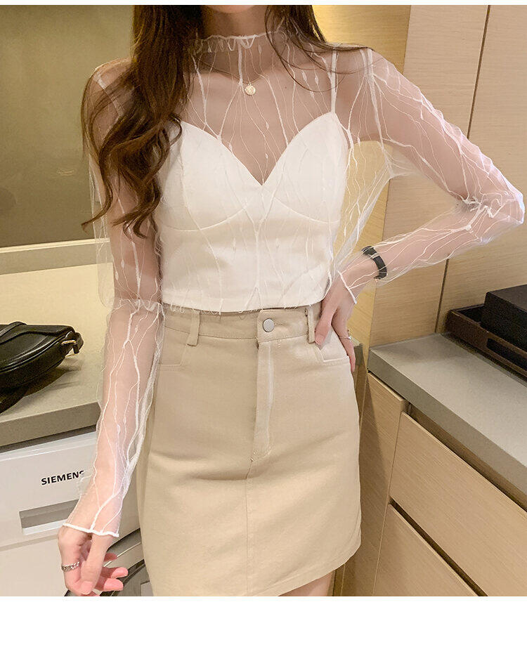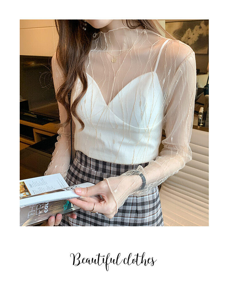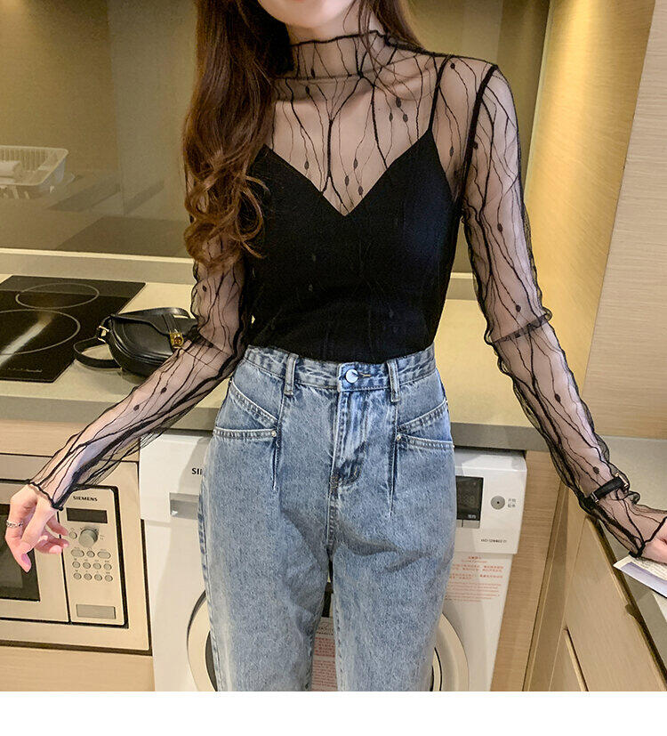 Spring and Autumn Simple Long Sleeves Fairy See-through Lace Mesh